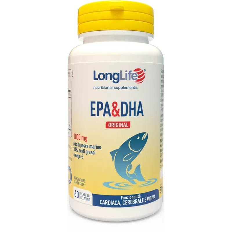 EPA e DHA sono acidi grassi omega-3 che contribuiscono alla normale funzione cardiaca, l'effetto benefico si ottiene con 250 mg di EPA e DHA (1 perla al giorno). Il DHA, inoltre, contribuisce al mantenimento della capacità visiva e alla normale funzione cerebrale, l'effetto benefico si ottiene con 250 mg di DHA (3 perle al giorno).