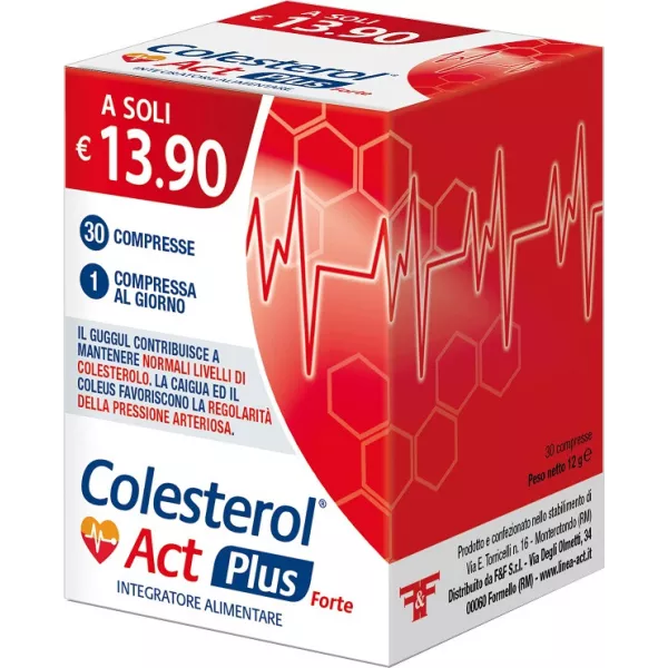 Ingredienti Agente di carica: cellulosa microcristallina; riso rosso fermentato [Oryza sativa (L.), semi] tit. 5% monacoline totali, fitosteroli tit. 65% beta-sitosterolo, policosanoli, guggul (Commiphora pedata mukul Hook., resina) e.s. tit. 10% guggulsteroni, caigua (Cyclanthera pedata L. Schrad, frutto) e.s. 5:1; agenti di rivestimento: calcio carbonato, idrossipropilmetilcellulosa, isomalto, acido stearico; Coleus (Coleus forskholii Willd. Bricq., radice) e.s. tit. 10% forskolina; agente antiagglomerante: sali di magnesio degli acidi grassi; aroma: vanillina; acido folico.