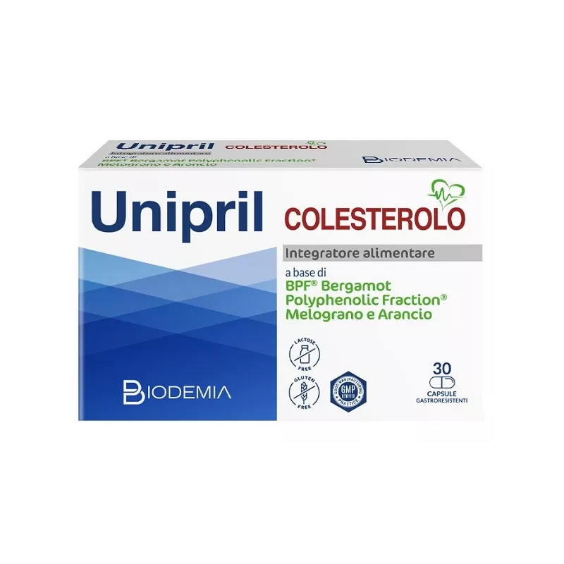 Descrizione Integratore alimentare a base di BPF Bergamot Polyphenolic Fraction, melograno e arancio, utile per aiutare a ridurre l'assorbimento di colesterolo per via esogena dagli alimenti.
