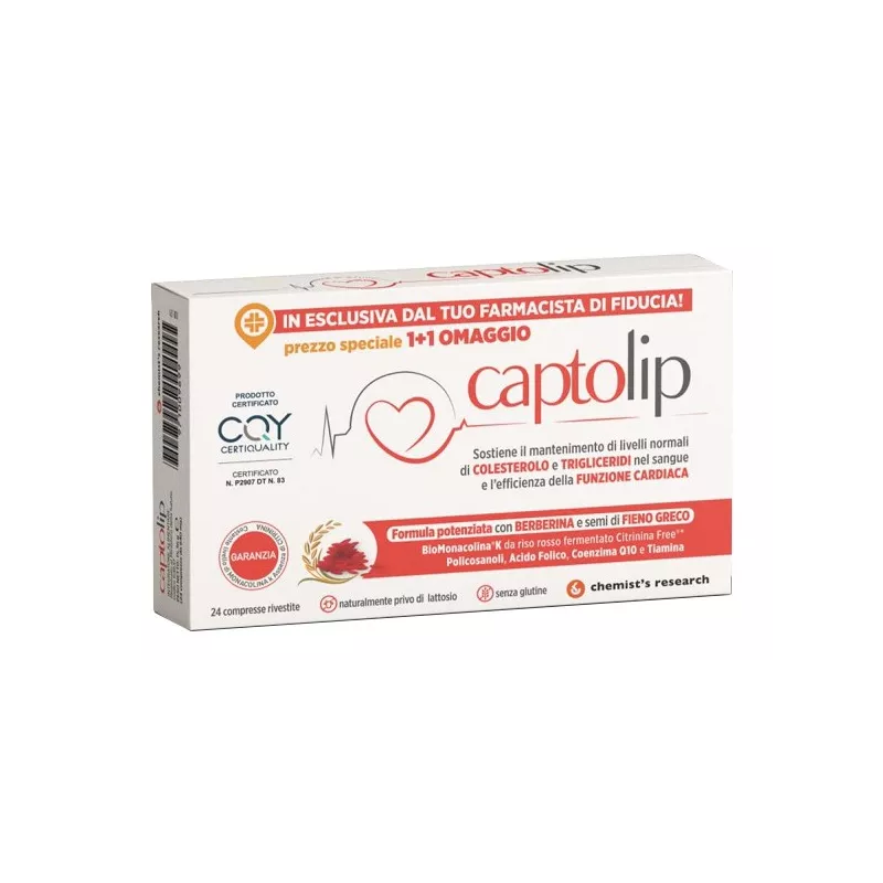 Ingredienti Berberis aristata D.C. corteccia dei rami e.s. tit. 85% berberina cloridato; agenti di carica: fosfato dicalcico, cellulosa microcristallina; Riso rosso fermentato (Oryza sativa L.-Monascus purpureus Went.) seme e.s. tit. 3% monacolina; fieno greco (Trigonella doenum-graecum) seme e.s.; stabilizzante: mono e digliceridi di acidi grassi; agenti di rivestimento: idrossipropilmetilcellulosa, gommalacca, talco, glicerina; agenti antiagglomeranti: biossido di silicio, magnesio stearato; policosanoli (da Saccharum officinarum L.) tit. 60% octacosanolo, coenzima Q10, tiamina cloridato, acido folico.