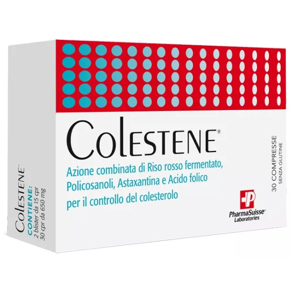Avvertenze Non superare la dose giornaliera raccomandata. Ogni compressa contiene 2,9 mg di Monacoline. Non consumare un quantitativo giornaliero pari o superiore a 3 mg di monacoline da riso rosso fermentato. Il prodotto non deve essere consumato dalle donne in gravidanza o in allattamento, dai bambini di età inferiore ai 18 anni e dagli adulti di età superiore ai 70 anni. Consultare un medico sul consumo di questo prodotto se si manifestano problemi di salute. Il prodotto non deve essere consumato se si assumono medicinali per abbassare il colesterolo. Non assumere se già si consumano altri prodotti contenenti riso rosso fermentato. Colestene contiene astaxantina per cui non deve essere assunto: se altri integratori alimentari contenenti esteri di astaxantina sono assunti lo stesso giorno; da lattanti e bambini nella prima infanzia di età inferiore ai 3 anni; da lattanti, bambini e adolescenti di età inferiore ai 14 anni. Tenere fuori dalla vista e dalla portata dei bambini al di sotto dei 3 anni di età. Gli integratori non vanno intesi quali sostituti di una dieta variata, equilibrata e di un sano stile di vita.
