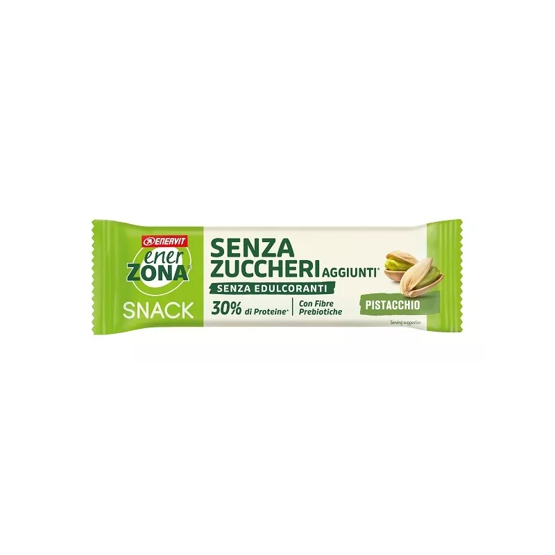 Descrizione Barretta proteica con pistacchi e copertura bianca al latte.
