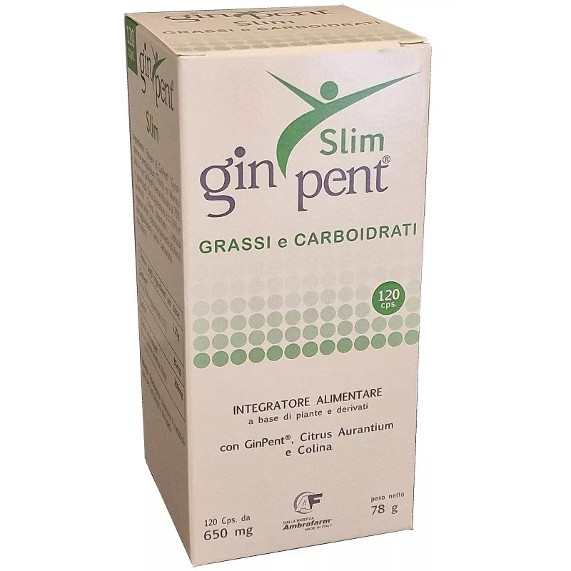 Ingredienti Polvere di GinPent [Gynnostemma pentaphyllum (Thunb. ex. Murray) makino var. GinPent] herba (tit al 70% in gipenosidi), Citrus aurantium e.s. (10% in sinefrina9, colina bitartrato, capsula vegetale HPCM (idrossipropilmetilcellulosa); antiagglomeranti: calcio carbonato precipitato.