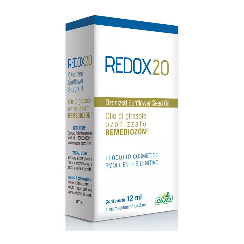 Grazie alle proprietà antinfiammatorie e antibatteriche dell’Olio di girasole ozonizzato, Redox 20 può risultare utile in caso di infiammazioni ed irritazioni (prostatata, emorroidi) inoltre favorisce l’attivazione del sistema Redox.