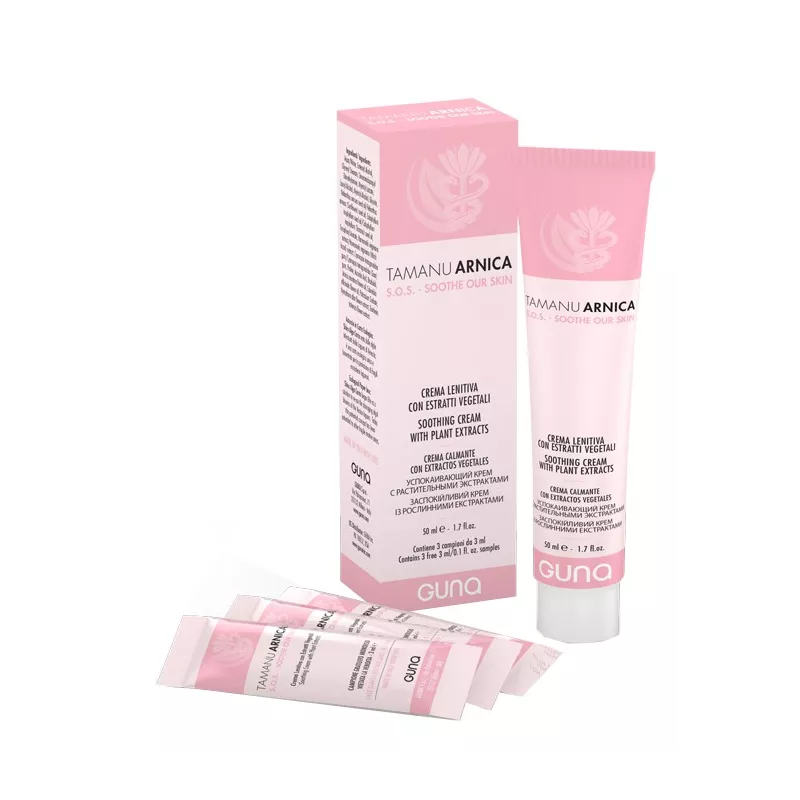 Contiene Arnica montana, Calendula officinalis (dalle note proprietà lenitive) e Nymphaea alba. L'olio di Tamanu (Calophyllum inophyllum) possiede notevoli proprietà lenitive, emollienti, protettive e coadiuvanti nei processi di riparazione cutanei. La Gardenia taitensis è utilizzata da secoli per pelli particolarmente secche e screpolate.