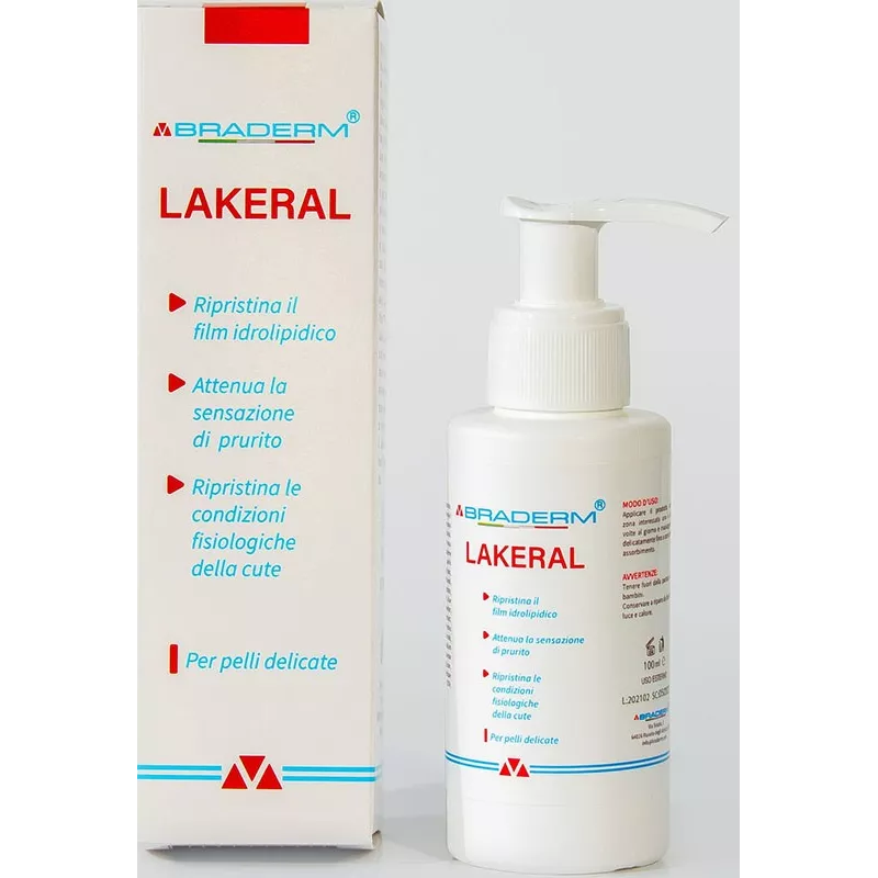 Braderm Lakeral è un’emulsione studiata per favorire il ripristino del film idrolipidico di pelli sensibili ed atopiche, lenisce le sensazioni fastidiose che le accompagnano, lasciando la pelle morbida con una piacevole sensazione di benessere.