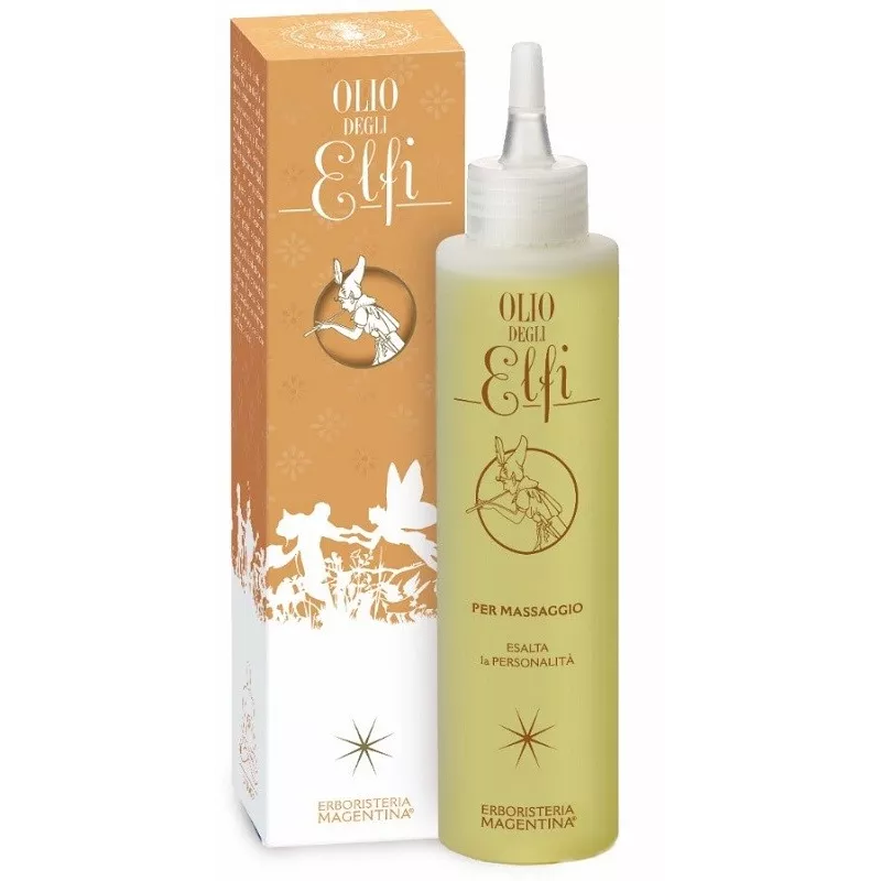 Miscela aromaterapica degli Elfi; Oli vegetali di: Mandorle, Sesamo, Vinaccioli e Soia; Iperico.