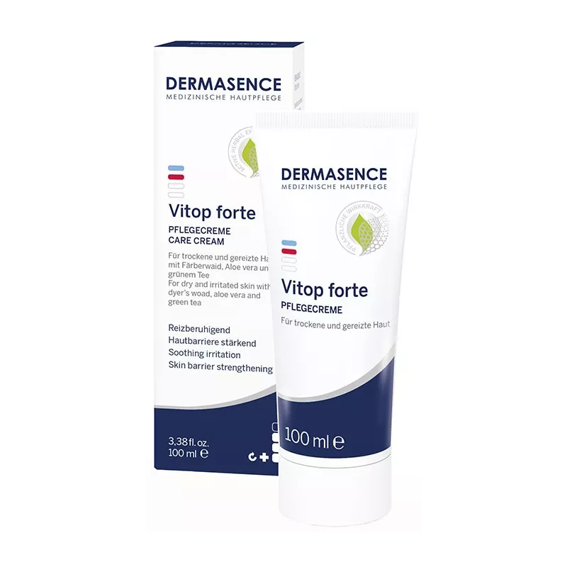 Crema nutriente per pelli secche e irritate, con complesso dermocompatibile Vitop a base di guada, aloe vera e tè verde.