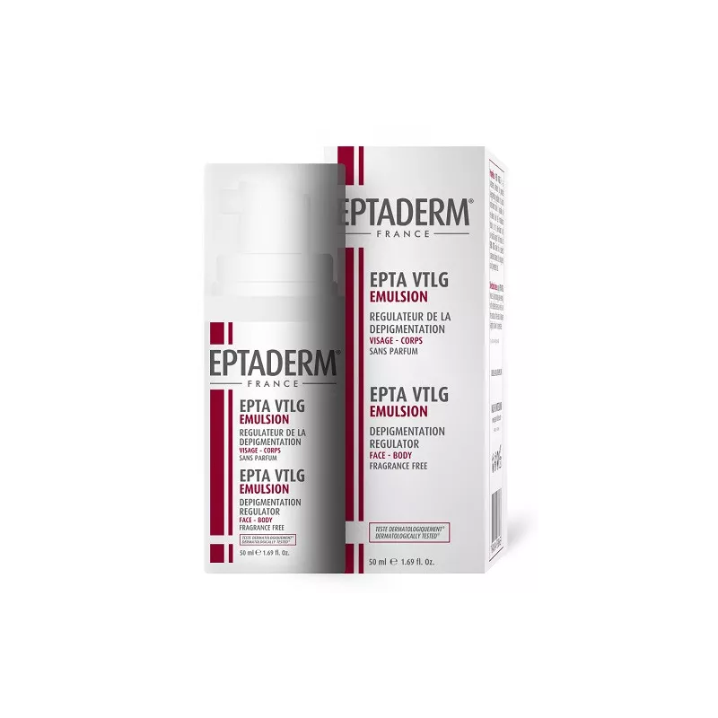 Trattamento destinato a promuovere la regolazione del depigmentamento. Il suo meccanismo d'azione consente di riequilibrare il metabolismo delle cellule della pelle grazie ai suoi agenti antiossidanti e anti-radicali. La formula di EPTA VTLG rende un'eccellente tolleranza cutanea. Non è né grassa né penetra in fretta.