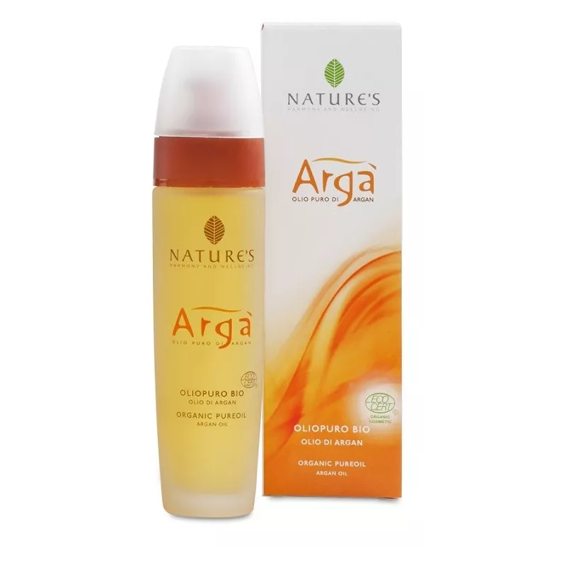 Olio Puro Bio Argà è un prezioso olio cosmetico, certificato Ecocert GreenLife, ricavato dai semi di Argan da agricoltura biologica, puro al 98,85%, arricchito con vitamine, antiossidanti naturali e olio essenziale di Litsea Cubeba, che conferisce il piacevole profumo agrumato, distintivo della linea Argà.