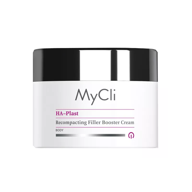 MyCli HA–Plast Crema Filler Booster Ricompattante è un’emulsione compatta specifica per il corpo ad effetto ultra correttivo. La sua formula rilancia la produzione di acido ialuronico endogeno, dando sostegno e plasticità alla cute e favorendo il riempimento delle micro rughe superficiali. Inoltre, potenzia l’attività dei fibroblasti e aumenta l’idratazione epidermica per una pelle compatta, morbida e setosa al tatto. Tecnologia micromolecolare integrata a base di: NAG, glicogeno e silanolo specializzato.