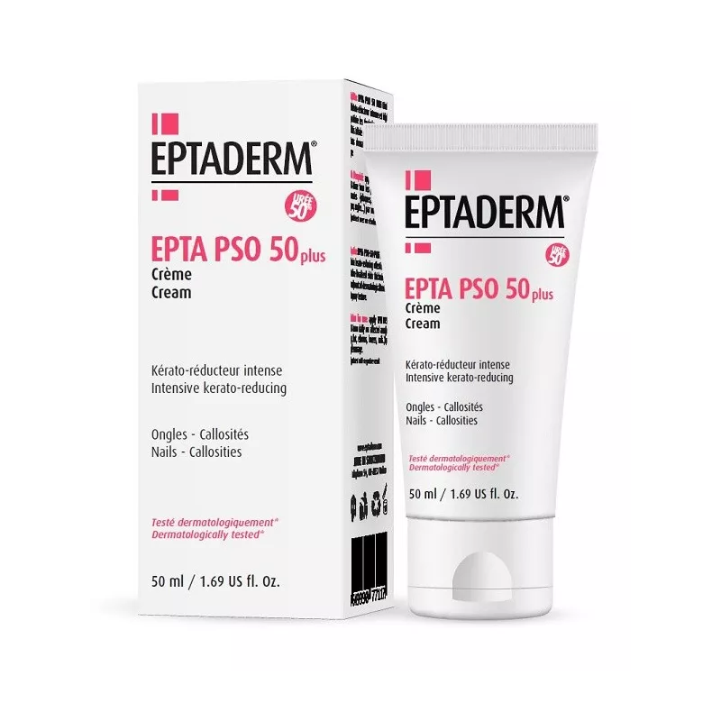 Applicare EPTA PSO 50 PLUS quotidianamente sulle zone interessate (placche, piedi, gomiti, ginocchia, unghie) con un leggero massaggio.