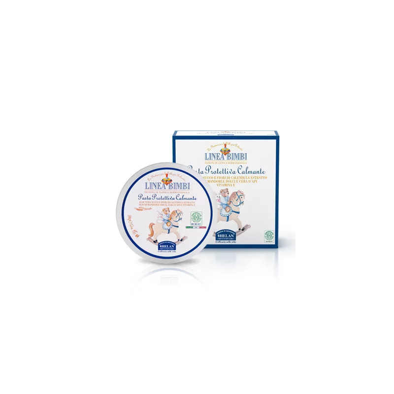 Pasta protettiva arricchita dall'olio di Mandorle dolci e cera d'Api, emollienti e lubrificanti, dall'attività rigenerante delle Vitamine C ed E, dall'Aloe vera succo ed estratto di fiori di Calendula, lenitivi e calmanti.