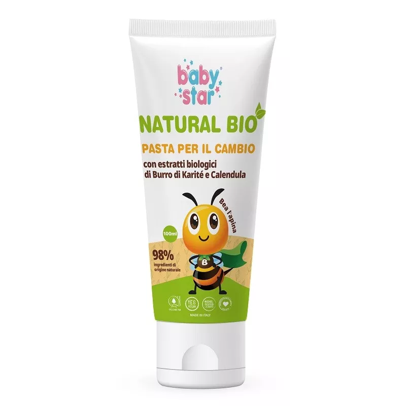 Pasta cambio protettiva all’ossido di zinco. Grazie alla presenza di burro di karité ed estratto di calendula biologico aiuta a prevenire irritazioni e arrossamenti che possono essere causati dai pannolini.