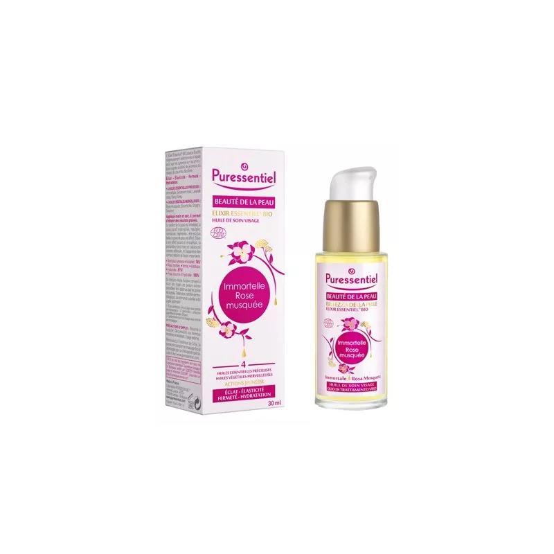 Olio di trattamento viso. Elixir Essentiel bio combina 8 principi attivi attentamente selezionati e dosati per agire in sinergia sui principali segni visibili di giovinezza del viso, del collo e del décolleté: luminosità, elasticità, compattezza, idratazione. La sua texture in olio fluido si adatta a tutti i tipi di pelle, anche a quelle sensibili, senza ostruire i pori. Testata sotto controllo dermatologico, la sua tolleranza cutanea è stata giudicata ottimale.