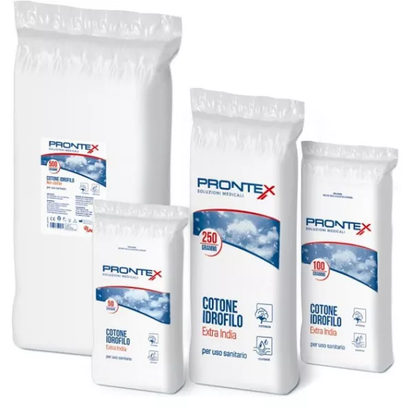 Cotone idrofilo Extra India per uso sanitario e cosmetico Esplora la morbidezza e la versatilità con PRONTEX COTONE Extra India, disponibile in cinque formati differenti (50g, 100g, 250g, 500g, 1000g). Questo pregiato cotone rappresenta la scelta perfetta per le tue esigenze di cura personale e igiene quotidiana.