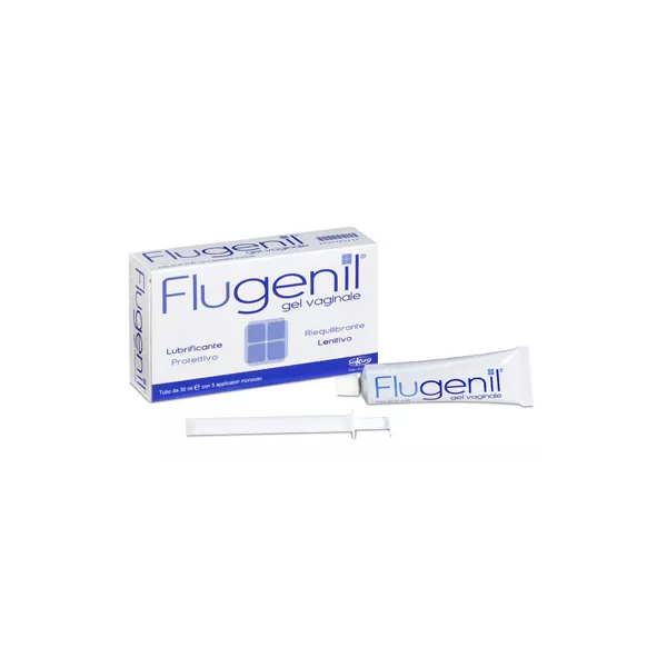 Flugenil gel vaginale è a base acquosa, non lascia residui ne macchia gli indumenti ed è compatibile con il lattice del profilattico.