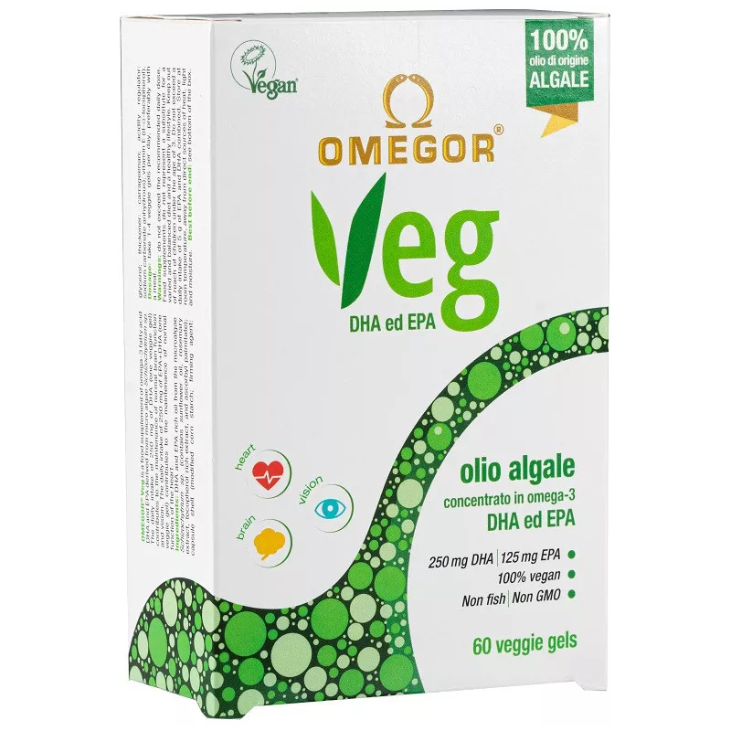 Ingredienti Olio ricco di DHA e di EPA derivato dalla microalga Schizochytrium sp. (contiene: olio di girasole, estratto di rosmarino, estratto ricco di tocoferolo e palmitato di ascorbile); involucro della capsula (amido di mais; agente di resistenza: glicerolo; gelificante: carragenina; correttore di acidità: carbonato di sodio); vitamina E (d-alfa-tocoferolo).
