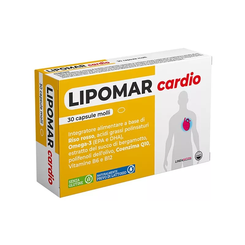Descrizione Integratore alimentare a base di riso rosso, acidi grassi polinsaturi omega-3 (EPA, DHA e olio di lino), estratto del succo di bergamotto, polifenoli dell’olivo, coenzima Q10, vitamine B6 e B12. L'EPA e il DHA contribuiscono alla normale funzione cardiaca (l’effetto benefico si ottiene con l’assunzione giornaliera di 250 mg di EPA e DHA); la vitamina B6 e la vitamina B12 contribuiscono al normale metabolismo dell’omocisteina. L'olio di semi di lino è utile per favorire il metabolismo dei lipidi