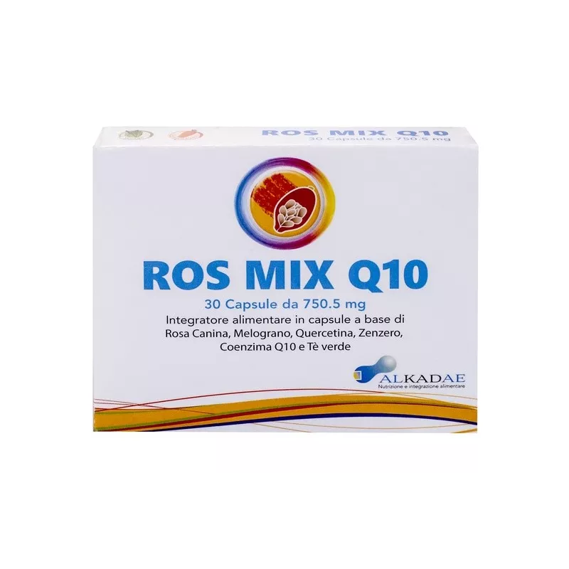 Ingredienti Rosa Canina (Rosa canina L.) frutto polvere estratto 20:1, Melograno (Punica Granatum L.) pericarpio polvere estratto tit. 40% in acido ellagico, Quercetina, Zenzero (Zingiber officinalis ROSC.) rhizoma polvere estratto 20:1, Coenzima Q10, Tè verde (Camelia sinensis L. KUNTZE) foglia polvere estratto 4:1, Maltodestrine da patata, Amido di mais, Olio di oliva, Biossido di silicio, Magnesio stearato, miscela naturale di tocoferoli, Olio di girasole; capsula (HPMC).