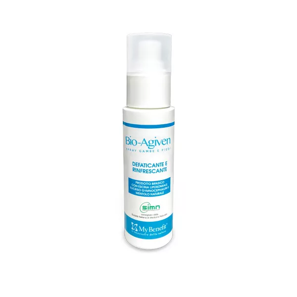 Bio-Agiven Spray è una formulazione bifasica progettata per donare un'immediata sensazione di freschezza e sollievo a gambe e piedi gonfi e affaticati.