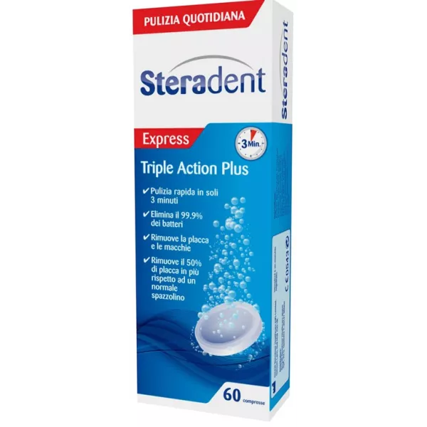 Compresse igienizzanti per dentiere sia totali che parziali.