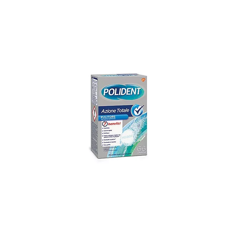 1. Introdurre una compressa di Polident Azione Totale in acqua molto calda (non bollente) in quantità sufficiente a ricoprire la protesi totale o parziale o il ponte mobile.