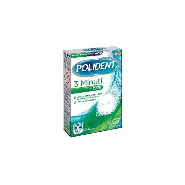 Le compresse di Polident 3 Minuti eliminano la maggior parte dei batteri responsabili dei cattivi odori e contribuiscono a eliminare le macchie resistenti e a ridurre la placca, lasciando la protesi pulita, fresca e luminosa ogni giorno.
