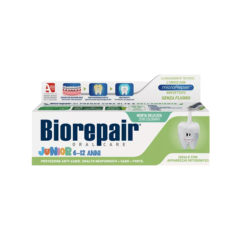 L'unico che contiene microRepair che rafforzano e proteggono dalla carie lo smalto dei denti in fase di sviluppo ed è ideale per remineralizzare l'erosione causata dagli apparecchi ortodontici. Con l'aggiunta di vitamina E, antiossidante, aiuta a mantenere sane le gengive. La formula è clinicamente testata e ha un delicato aroma alla menta della proprietà rinfrescanti.