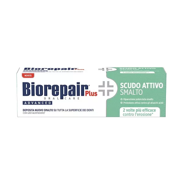 - Scudo attivo smalto è la formula avanzata Biorepair Plus che rinforza lo smalto dei denti rendendolo più resistente all'attacco degli acidi.