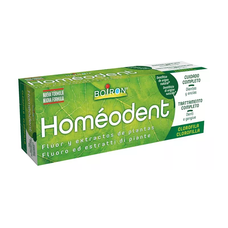 Dentifricio di origine naturale. Trattamento completo denti e gengive clorofilla. Grazie alla sua formula unica, a base di fluoro ed estratti di piante accuratamente selezionate, Homéodent trattamento completo aiuta a ridurre la placca dentale responsabile della comparsa di carie. Le piante selezionate presenti in Homéodent trattamento completo sono raccolte a mano da raccoglitori professionisti, in modo da conservare tutte le loro proprietà benefiche. L'approccio alla raccolta è responsabile e sostenibile al fine di rispettare la biodiversità e assicurare la sopravvivenza alle specie di piante.