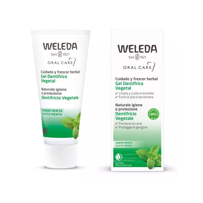 La regolare pulizia dei denti con il Dentifricio Vegetale riduce la placca e protegge contro la carie.
