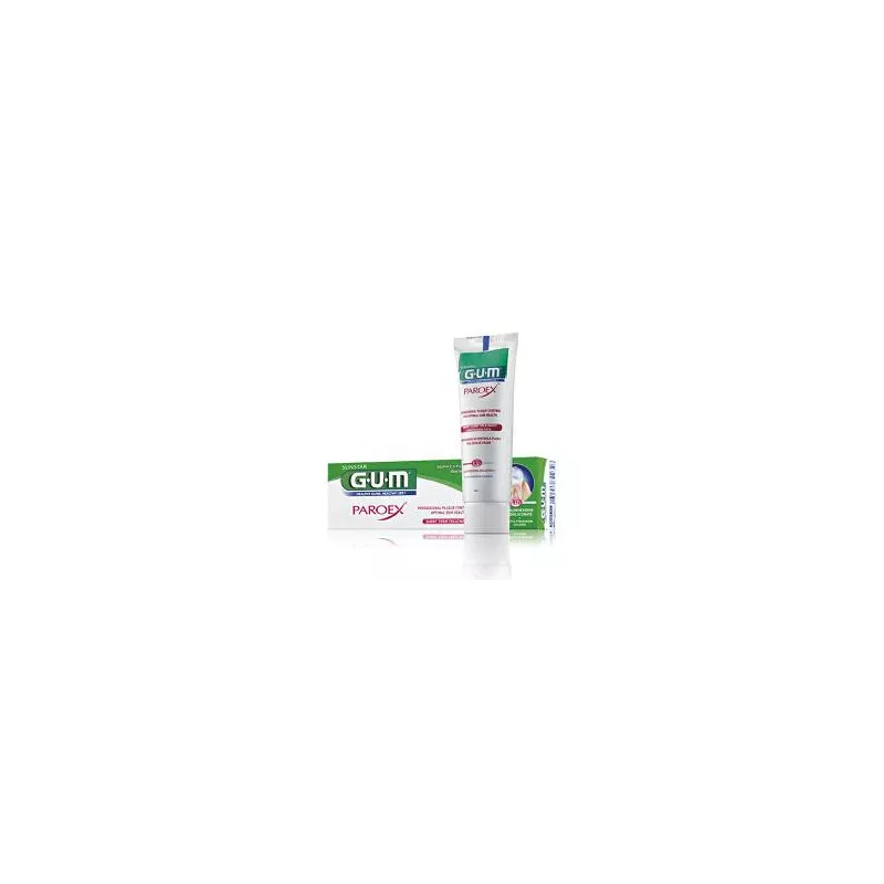 Dentifricio in gel per trattamenti temporanei GUM Paroex 0,12% CHX + 0,05% CPC. Utile in caso di infiammazione gengivale e sanguinamento. Appositamente indicato per il controllo della placca nella cura dei danni al tessuto parodontale (gengivite, parodontite). Ideale per prolungare l'efficacia della cura dentistica e prevenire la formazione di nuova placca.