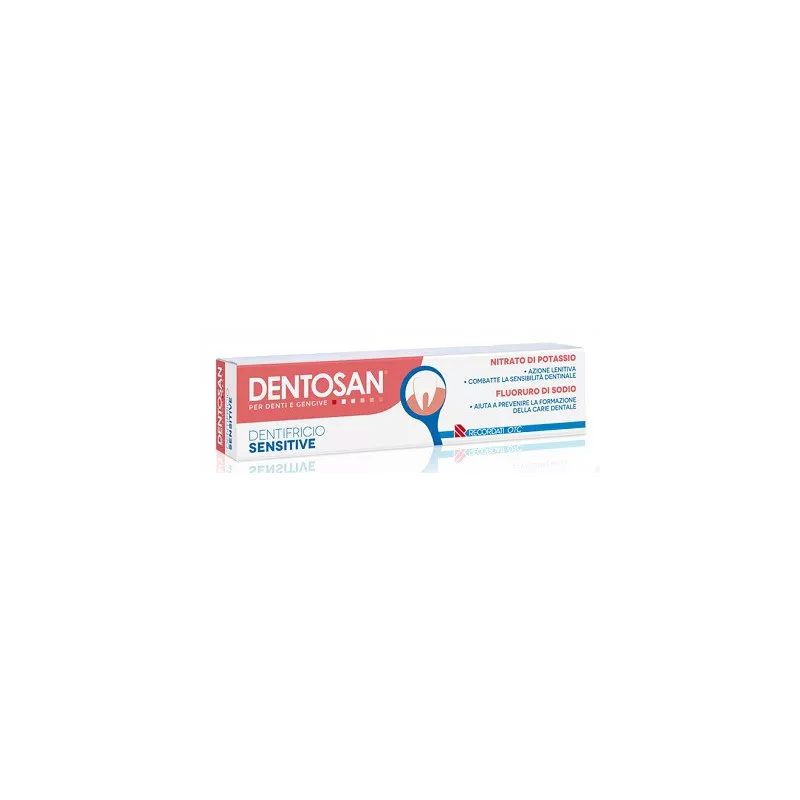 Dentifricio formulato per combattere la sensibilità dentinale ed essere delicato sui denti e sulle gengive. Per un migliore risultato nel combattere la sensibilità dentinale Dentosan consiglia di utilizzare con il dentifricio Dentosan Sensitive uno spazzolino con setole morbide.