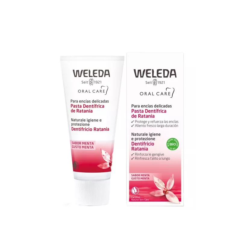Pasta dentifricia dal classico gusto di menta. Rimuove la placca batterica senza aggredire lo smalto grazie alle particelle di carbonato di calcio. Estratti di mirra e radice di ratania igienizzano e mantengono sane le gengive. La regolare pulizia dei denti con il Dentifricio Ratania protegge contro la carie, rinforza le gengive e rinfresca l'alito. Clinicamente testato: efficace contro la placca. Non contiene ingredienti da animali.