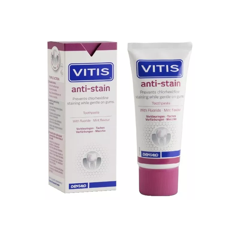 Dentifricio antimacchia che previene le macchie superficiali causate dall'interazione con antisettici, come la clorexidina, con tabacco, caffè, tè, vino rosso o frutti di bosco, durante i trattamenti dentali. Contiene monofluorofosfato di sodio (1.450 ppm di ione fluoruro). La sua formula a bassa abrasività lo rende delicato sulle gengive.