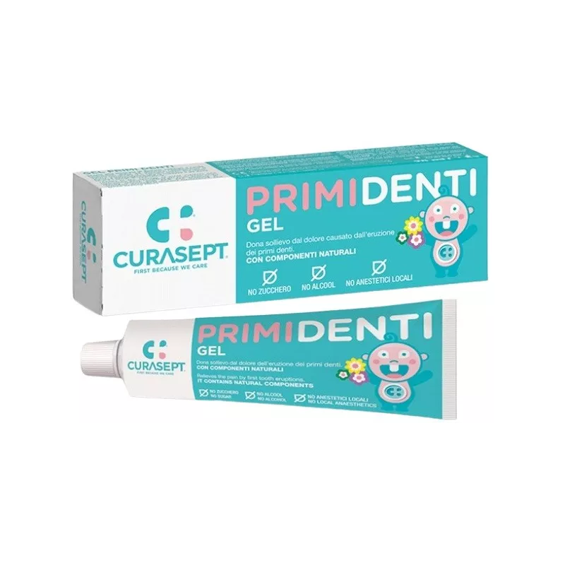 Curasept gel Primi Denti grazie alla sinergia di estratti vegetali e acido ialuronico, aiuta ad alleviare rapidamente il dolore gengivale e il fastidio legati alla dentizione proteggendo la mucosa.