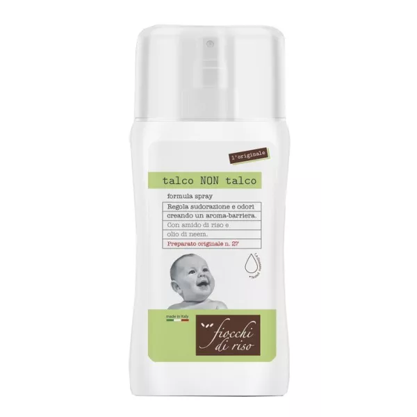 Spray per regolare la sudorazione e gli odori. Con amido di Riso e olio di Neem.