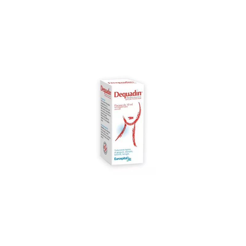 Dequadin contiene il principio attivo dequalinio cloruro (detto anche decametilen bis aminochinaldina cloruro), ed è un farmaco antibatterico a vasto spettro ed antifungino (antimicotico). E' attivo contro i batteri Gram positivi e Gram negativi, su Borrelia vincenti, Candida albicans e alcune specie di Tricophyton. Dequadin si usa nel trattamento topico (locale) di gengiviti (infiammazioni della gengive), stomatiti (infiammazioni della bocca), tonsilliti (infiammazioni delle tonsille) e faringiti (infiammazioni della faringe).