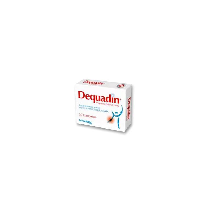 Dequadin contiene il principio attivo dequalinio cloruro (detto anche decametilen bis aminochinaldina cloruro), ed è un farmaco antibatterico a vasto spettro ed antifungino (antimicotico). E' attivo contro i batteri Gram positivi e Gram negativi, su Borrelia vincenti, Candida albicans e alcune specie di Tricophyton. Dequadin si usa nel trattamento topico (locale) di angine (infiammazioni della faringe e/o delle tonsille), stomatiti (infiammazioni della bocca), faringiti (infiammazioni della faringe) e tonsilliti (infiammazioni delle tonsille).