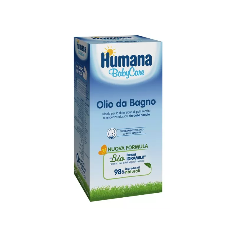 Olio da bagno ideale per la detersione di pelli secche a tendenza atopica, sin dalla nascita. Con Bio Humana Idramilk, eclusivo mix di latti vegetali biologici. Questo prodotto è realizzato con il 98% di ingredienti di origine naturale. L'elevata naturalità della formula può comportare variazioni di colore, che non alterano la qualità del prodotto. Il restante 2% è composto da ingredienti che aiutano a conservare il prodotto e a migliorarne l'esperienza di utilizzo. Clinicamente testato su pelli sensibili. Ideale sin dalla nascita, adatto per l'igiene quotidiana, adatto per pelli secche a tendenza atopica. Deterge delicatamente rispettando la barriera cutanea senza creare irritazioni.