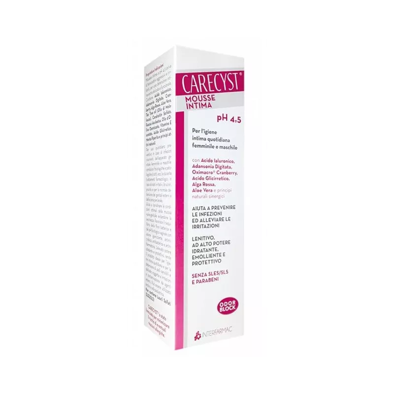 Mousse detergente per l’igiene intima quotidiana femminile e maschile a base di una selezionata miscela di principi naturali sinergici per una detersione intima extra delicata e funzionale. Lenitivo e rinfrescante; ad alto potere idratante, emolliente e protettivo. Svolge un'azione igenizzante, antimicrobica, antibatterica, antinfiammatoria. Per uso quotidiano preventivo in caso di infezioni ricorrenti dell’apparato genitale femminile e maschile: condizioni fisiologiche e patologiche (cistiti, ecc.) e durante trattamenti farmacologici; in caso di stati irritativi, bruciori, prurito e per la normale detersione dei genitali esterni e della zona perianale. Aiuta a ripristinare le condizioni ottimali della mucosa vulvo-genitale evitandone la secchezza. Favorisce il riequilibrio della flora batterica e del pH fisiologico vaginale. L’elevato potere idratante e protettivo, rende il prodotto ideale per la detersione di pelli sensibili e delicate, soggette a irritazioni e contaminazione da agenti esterni. Può essere utilizzato anche in età pediatrica.