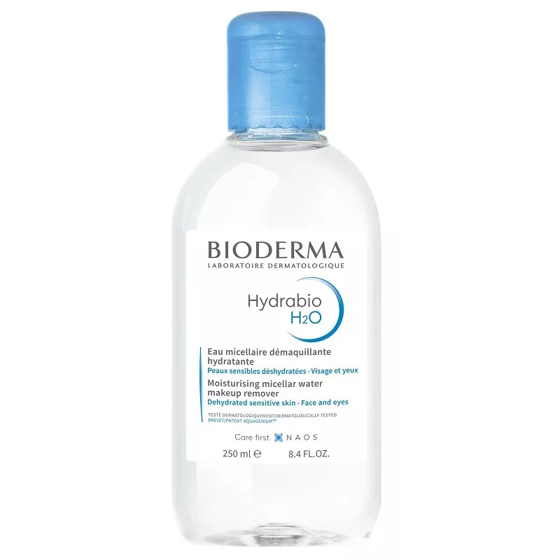 Acqua micellare compatibile con la pelle che strucca e idrata.