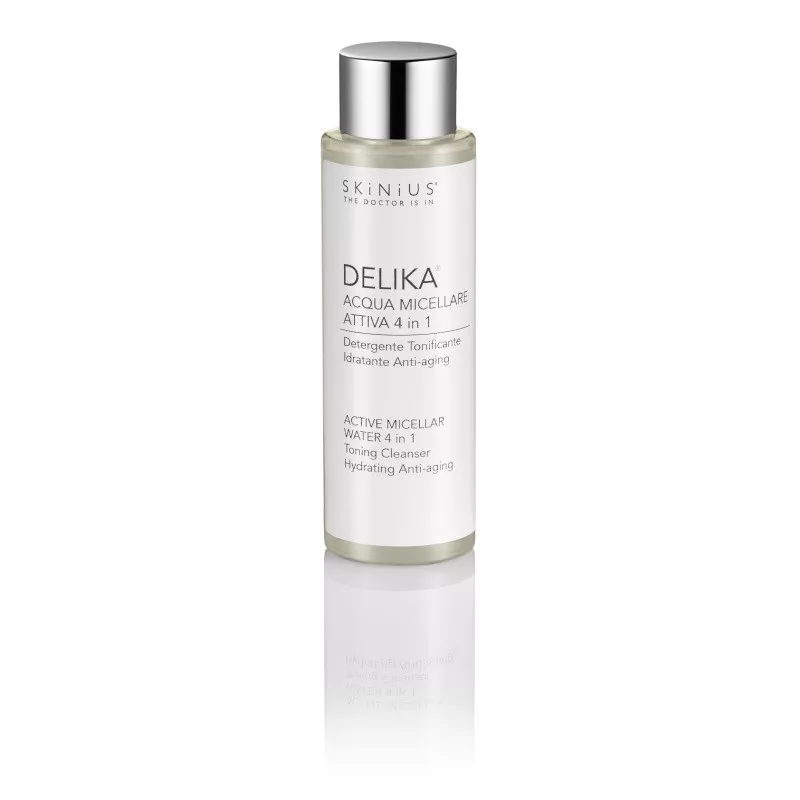 Deterge, tonifica, lenisce e svolge azione anti-aging lasciando l’epidermide idratata, tonica, elastica, compatta e luminosa. Rimuove il trucco e le impurità donando una piacevole sensazione di freschezza. Studiata per le pelli più delicate e sensibili, ideale anche in caso di pelle mista e pori dilatati. DELIKA contiene Fospidina, un complesso formato da fosfolipidi estratti dalla soia e glucosamina. La loro azione sinergica ha dimostrato un’importante azione rigenerante sui tessuti cutanei in quanto, l'attività della glucosamina, precursore dell’acido ialuronico, risulta efficace grazie alla veicolazione operata dai fosfolipidi che penetrano fino al derma.