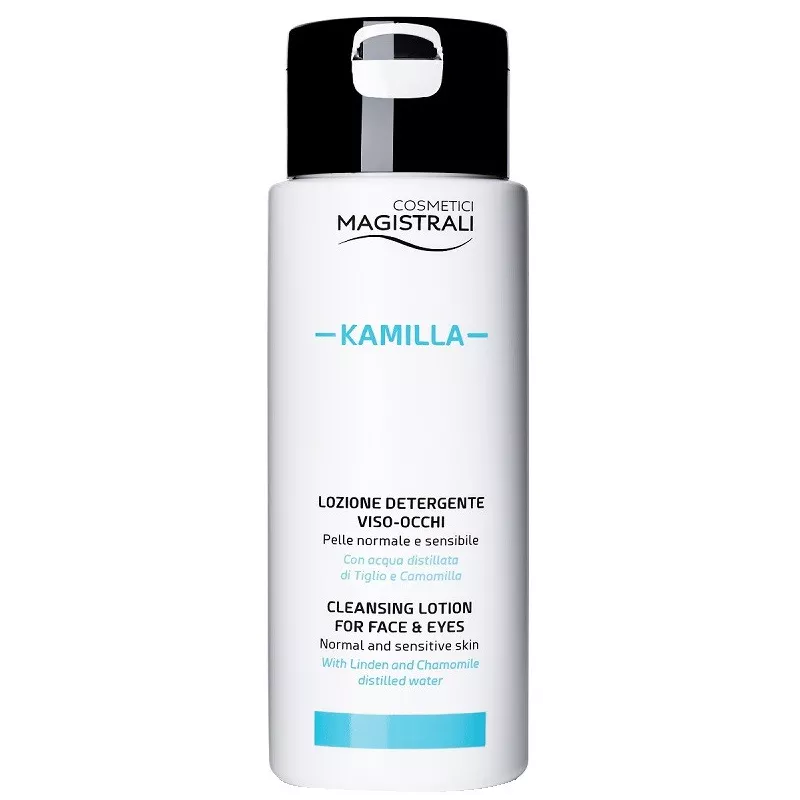 Lozione detergente viso-occhi, senza risciacquo. Lozione formulata allo stesso pH e concentrazione salina del liquido lacrimale. Senza aggiunta di profumazioni, Kamilla coniuga l'azione lenitiva e calmante dell'acqua distillata e dell'olio di camomilla con l'azione rinfrescante e distensiva dell'acqua distillata di tiglio. Per pelle normale e sensibile.