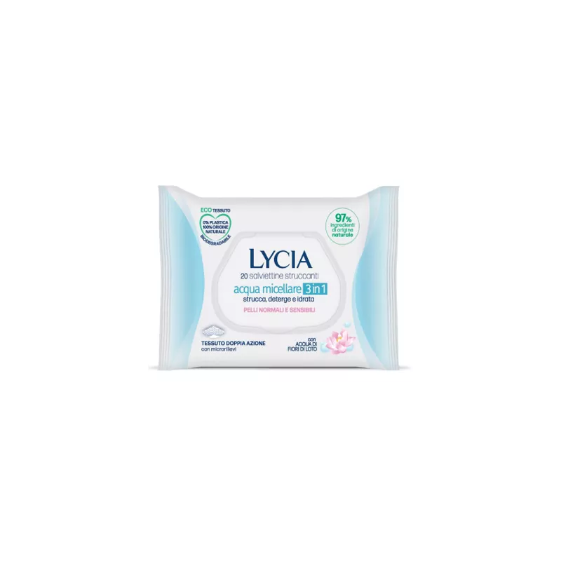 Salviettine struccanti all'acqua micellare 3 in 1.