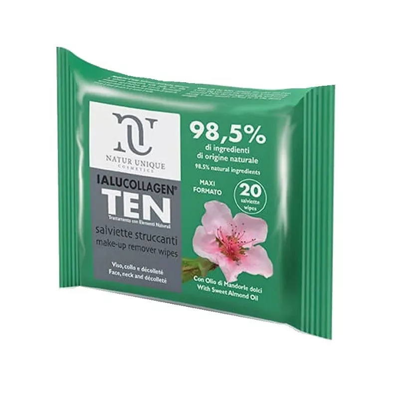 Delicate salviette per rimuovere efficacemente ogni traccia di trucco da viso, collo e décolleté. La lozione, fresca, tonica e leggera, non appiccica, non necessita di risciacquo e lascia la pelle perfettamente pulita e morbida. È arricchita con Acido Ialuronico, dalle spiccate proprietà idratanti, e con Olio di Mandorle Dolci dalle qualità nutrienti.