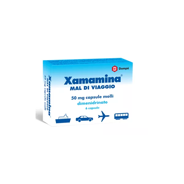 XAMAMINA MAL DI VIAGGIO contiene il principio attivo dimenidrinato che appartiene alla categoria dei medicinali antiemetici (contro il vomito) e antinausea.