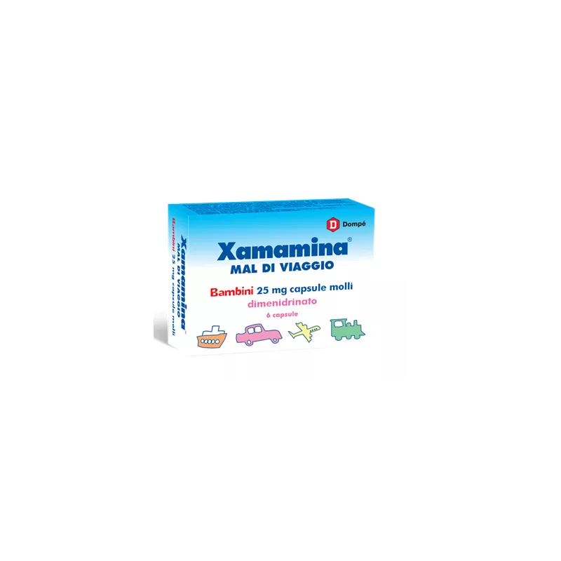 XAMAMINA MAL DI VIAGGIO contiene il principio attivo dimenidrinato che appartiene alla categoria dei medicinali antiemetici (contro il vomito) e antinausea.