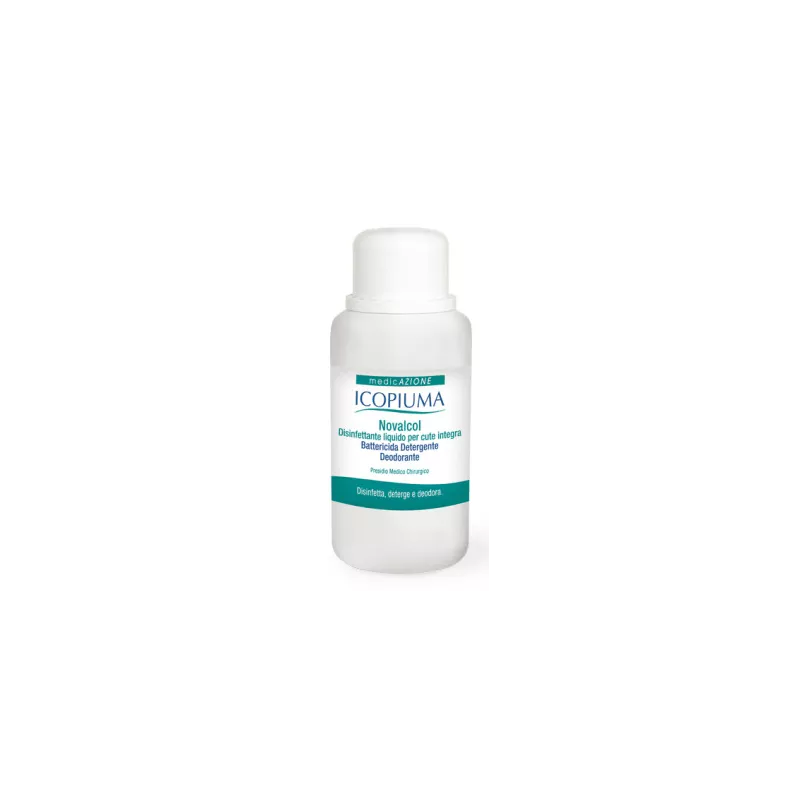 Liquido disinfettante antibatterico per cute integra con un'azione completa e superiore all'alcool: non brucia, non irrita e non macchia la pelle, non è tossico e non è infiammabile. Novalcol deterge, deodora e disinfetta la pelle, lasciandola morbida.